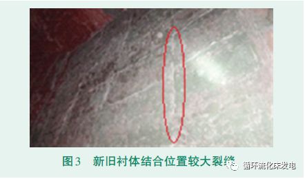 主要有以下几种情况:(1)敷设衬体前,没有对工作区域周围旧衬体进行清洁,造成新旧衬体结合位置产生较大裂缝(见图3)。