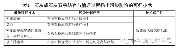 石灰或石灰石粉在装卸、储存与输送过程扬尘污染防治可行技术见表2。