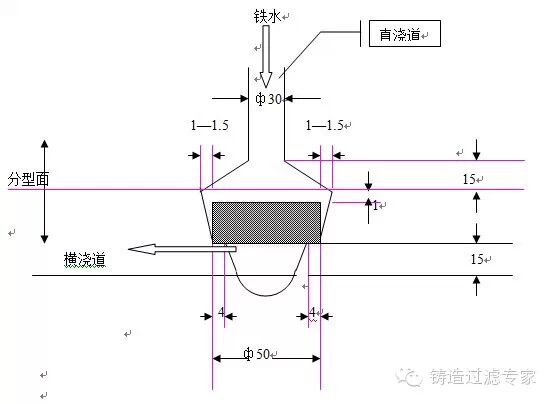 ② 浇注系统的设计以简单为好,可不考虑其它挡渣措施,这样可提高砂型的利用率和工艺出品率;