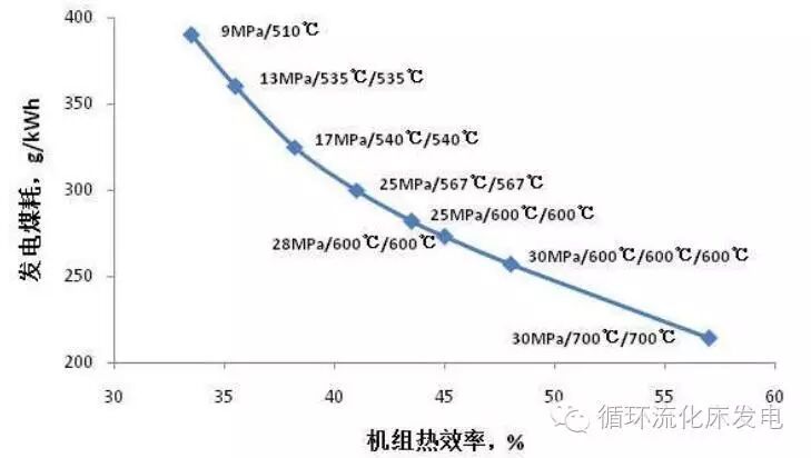 机组热效率、发电煤耗与参数等级的关系