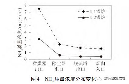 根据烟囱入口NH3浓度估算U1和U2锅炉NH3的年排放量分别约为2.40t和1.12t,虽然单台锅炉的氨年排放量不大,但是一个地区多台机组的脱硝设备同时投运排入大气环境的总氨量对局部地区雾霾形成的影响尚须深入评估。
