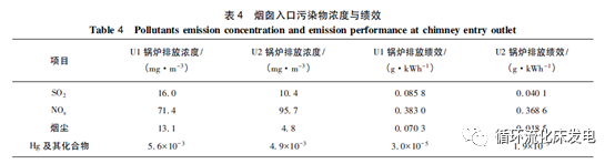 4)U1和U2锅炉SO2排放绩效分别为0.0858、0.0401g/kWh,NOx排放绩效分别为0.3701、0.3544g/kWh,均优于依据特别排放限值测算的排放绩效。