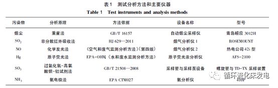 测试方法及主要仪器见表1。在现场实际测量时采样枪外加装有伴热装置,以排除液滴、冷凝水气对测量造成的误差。采样分析要点如下:低浓度烟尘采样选取代表点使用滤膜等速法,同时记录采气体积;SO2和NOx采用烟气分析仪测量,取样点布置采用网格法;SO3采样选取代表点采用化学吸收法,使用高氯酸钡溶液滴定时仔细观察变色情况,防止滴定过量;NH3采样选取代表点选用氨电极法分析,标准工作曲线应准确。计算结果均取算术平均值。除非特别注明,文中结果均为测试工况及煤种下,折算到标态、干基、6%O2条件下的数值。