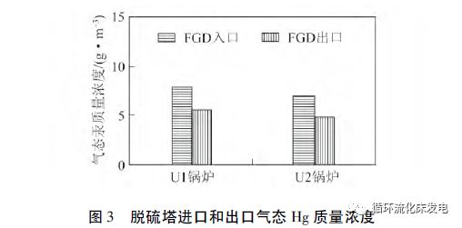 2)锅炉在燃烧过程中添加了石灰石,预脱硫的同时具有一定的脱汞能力,再经除尘器及WFGD的协同脱除作用,不需要额外增加汞控制设备,气态汞排放浓度可分别达到5.6×10-3和4.9×10-3mg/m3,均远小于大气污染物排放限值要求。