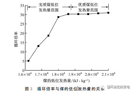 实际工程应用中,可以根据循环倍率与煤的低位发热量的关系,选择合适的煤种或改变煤泥的掺烧比例以得到燃料的不同发热量,控制循环倍率在给定的范围内.