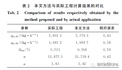 在取初值k=3,α*=1.2的情况下,计算得出相关参数.为了验证计算结果的准确性,同时采用国外实际工程应用中CFB锅炉循环灰量的计算方法进行了计算,对比结果如表2所示.