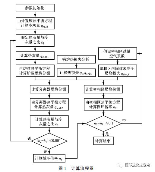 四平衡是指外置床、分离器、炉膛及密相区的热平衡,这也是该计算方法的基础与核心;双循环以热灰量与冷灰量之比k和密相区过量空气系数α为循环迭代参数.